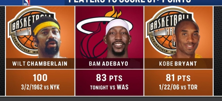 直播吧03月11日訊 NBA常規(guī)賽,熱火150-129擊敗奇才。阿德巴約單場砍下83分,超越科比NBA歷史第2。