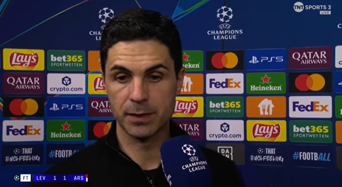 直播吧03月12日訊 歐冠1/8決賽首回合,阿森納客場1-1絕平勒沃庫森。賽后,槍手主帥阿爾特塔接受了TNT體育的采訪。