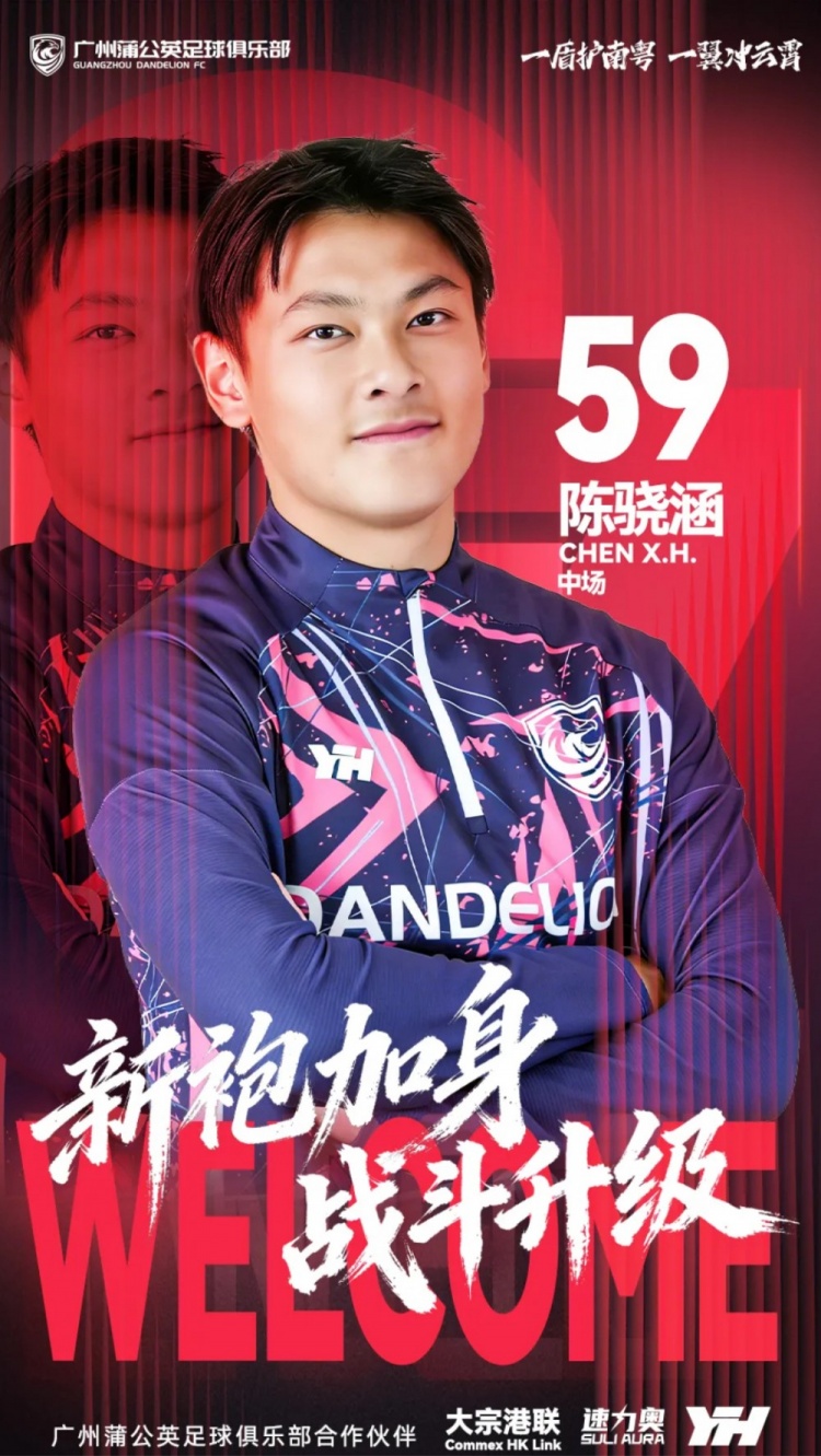 盾護(hù)南粵,翼沖云霄。2026賽季陳驍涵將身穿廣州蒲公英戰(zhàn)袍出征各項(xiàng)賽事,期待他未來為廣州球迷帶來更多精彩表現(xiàn),與廣州蒲公英一同書寫更多新篇章!