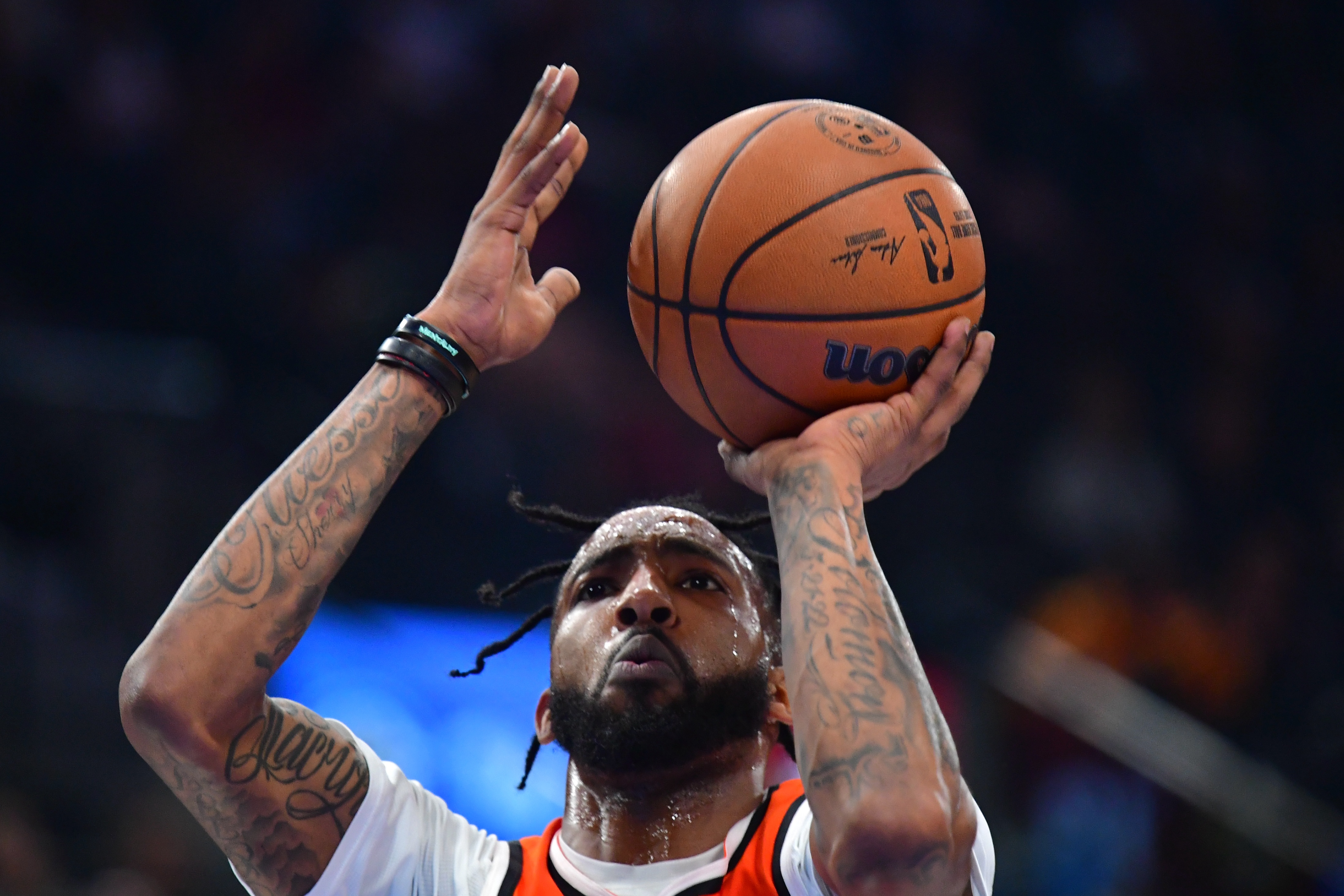 他上半場打了16分38秒,4投4中,罰球4中4,拿到12分2籃板1助攻4搶斷1蓋帽。