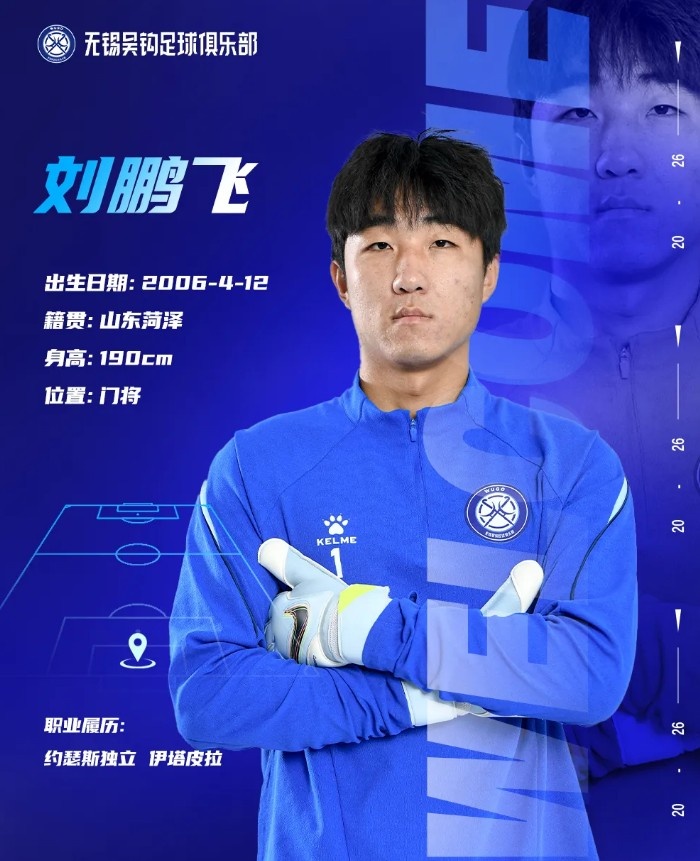 無錫吳鉤官方宣布劉鵬飛加盟球隊,這位19歲門將出生于山東菏澤,身高190厘米,他的身高條件出色、門線技術(shù)扎實、反應速度極快,是一名極具潛力的年輕門將,將為球隊門將位置增添深度與未來儲備。