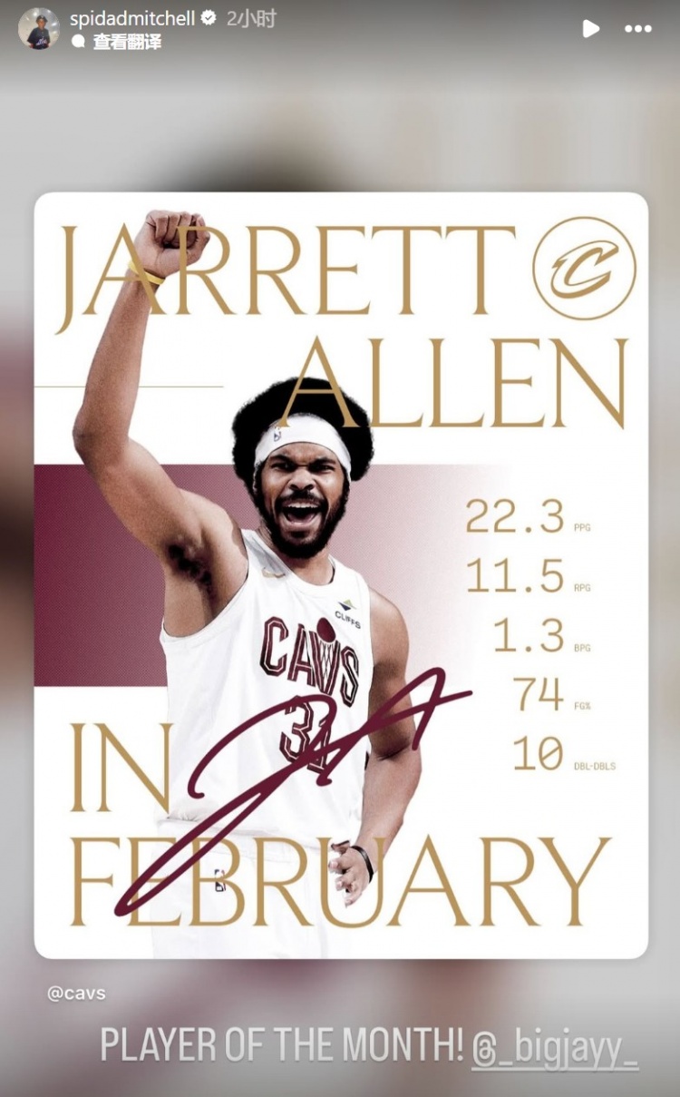 隊友米切爾轉(zhuǎn)發(fā)評論道:“月最佳球員?!?/p>