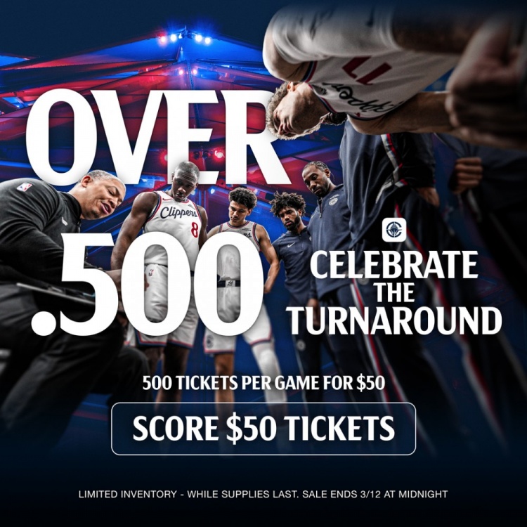 快船官方發(fā)文寫道:“接下來24小時內(nèi),我們每場比賽將提供500張?zhí)貎r門票,每張僅售50美元!這500張門票將會很快售罄,趕快鎖定你的門票吧!”