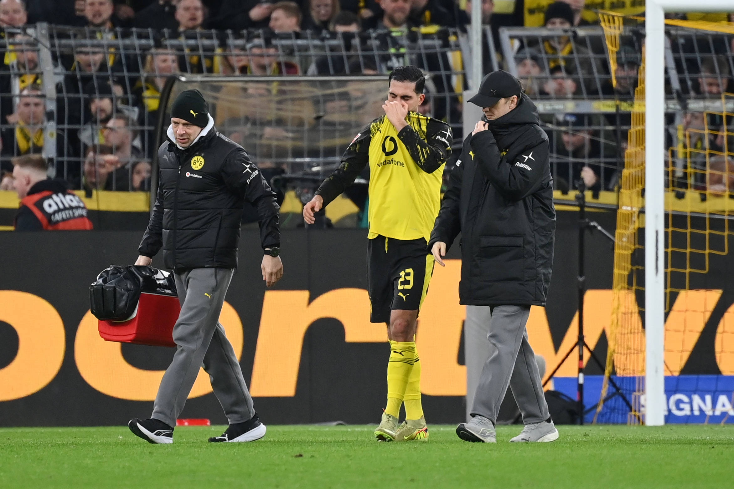 隨后其他多特球員一個(gè)接一個(gè)走到車旁,示意搖下車窗并擁抱安慰詹,其中還包括拜仁中場格雷茨卡。當(dāng)晚21點(diǎn)30分左右,埃姆雷·詹和他的經(jīng)紀(jì)人在漫長的等待后終于出發(fā),乘車從東看臺(tái)北出口離開了球場。