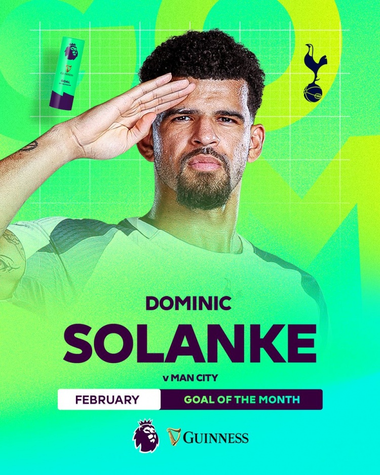 直播吧3月13日訊 英超官方宣布,熱刺前鋒索蘭克對(duì)陣曼城的蝎子擺尾破門,當(dāng)選2月最佳進(jìn)球。