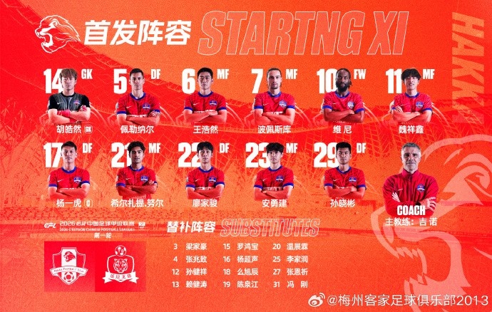 北京時間3月14日19:30,2026怡寶中甲聯(lián)賽首輪比賽,梅州客家犀旺隊(duì)0-3不敵延邊龍鼎。
