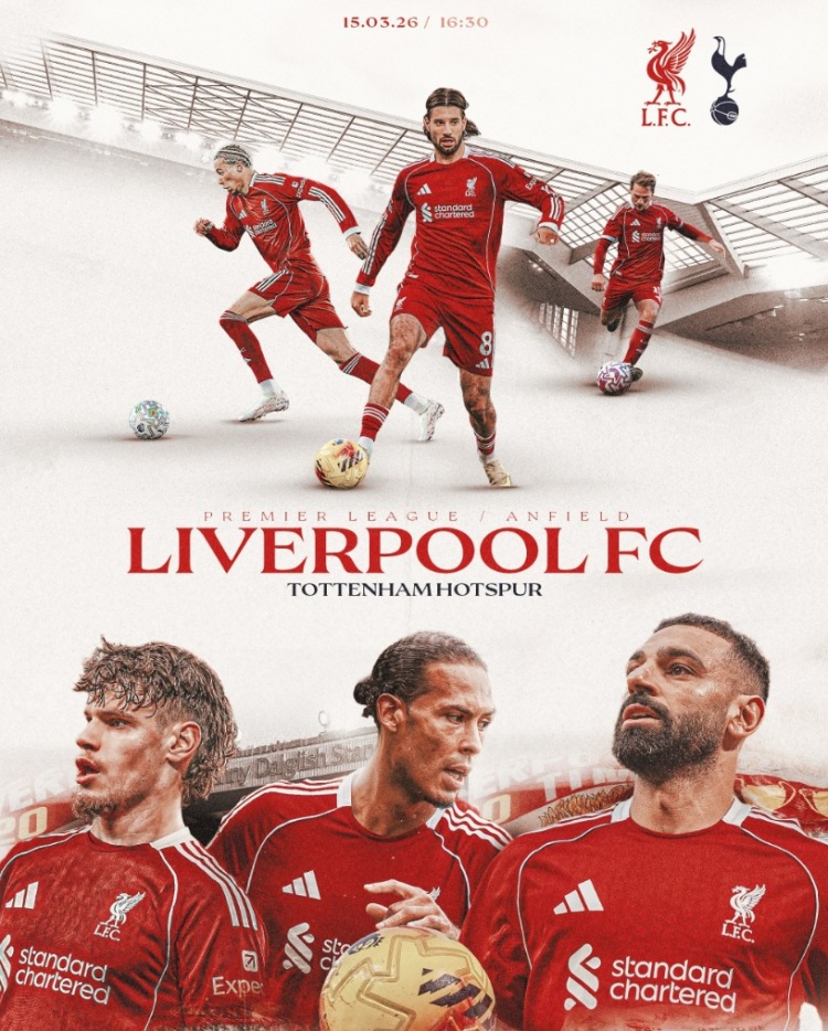 賽前,利物浦官方曬出海報,為本場比賽預(yù)熱,索博斯洛伊、薩拉赫、范戴克等多人出鏡。利物浦官方還配文寫道:“安菲爾德的比賽日,我們將在英超迎戰(zhàn)熱刺?!?/span>