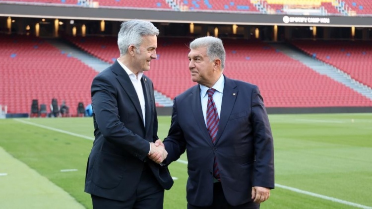 拍攝結(jié)束時,在球場邊線附近,緊挨著替補席,在各自重新與親信隨從會合后,他們用堅定地握手道別,互相祝福好運。今晚,兩人中只有一位將成為巴塞羅那足球俱樂部的主席。