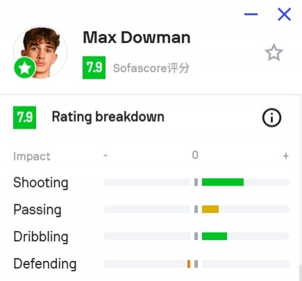 在此之前足總杯對曼斯菲爾德,道曼就給出了很好的數(shù)據(jù)。比賽半小時計道曼的射門次數(shù)(4次)、奪回球權(quán)次數(shù)(6次)以及在對方禁區(qū)內(nèi)觸球次數(shù)(6次)均是比賽第一多。賽后也被專業(yè)人士夸贊。