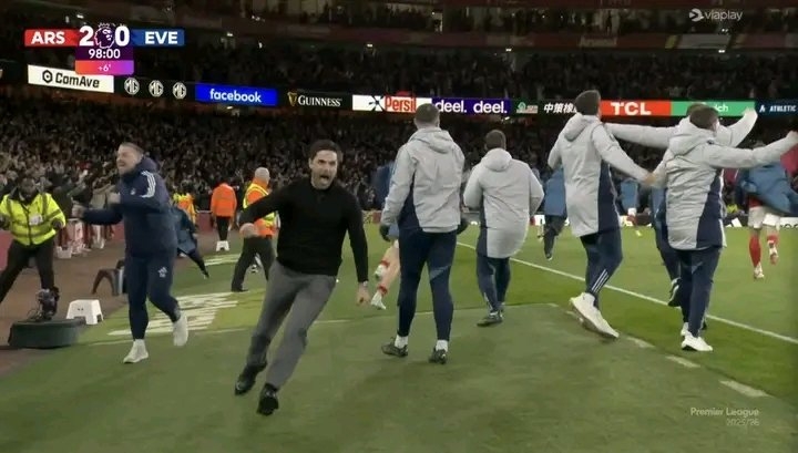 真正的高潮在傷停補時第97分鐘到來。埃弗頓角球進攻,門將皮克福德棄門參與進攻未果,阿森納抓住反擊機會。道曼后場拿球,長驅(qū)直入,過掉兩名防守球員,冷靜推射空門得手。2-0,比賽就此殺死。