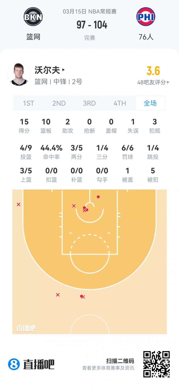 籃網(wǎng)首輪27號(hào)秀沃爾夫 登場26.4分鐘