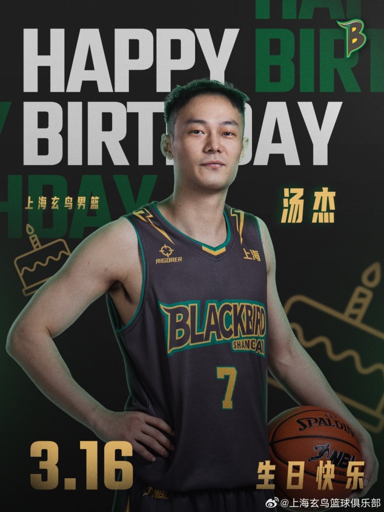直播吧3月16日訊 NBL球隊上海玄鳥籃球俱樂部發(fā)文,祝福隊內(nèi)球員湯杰27歲生日快樂。