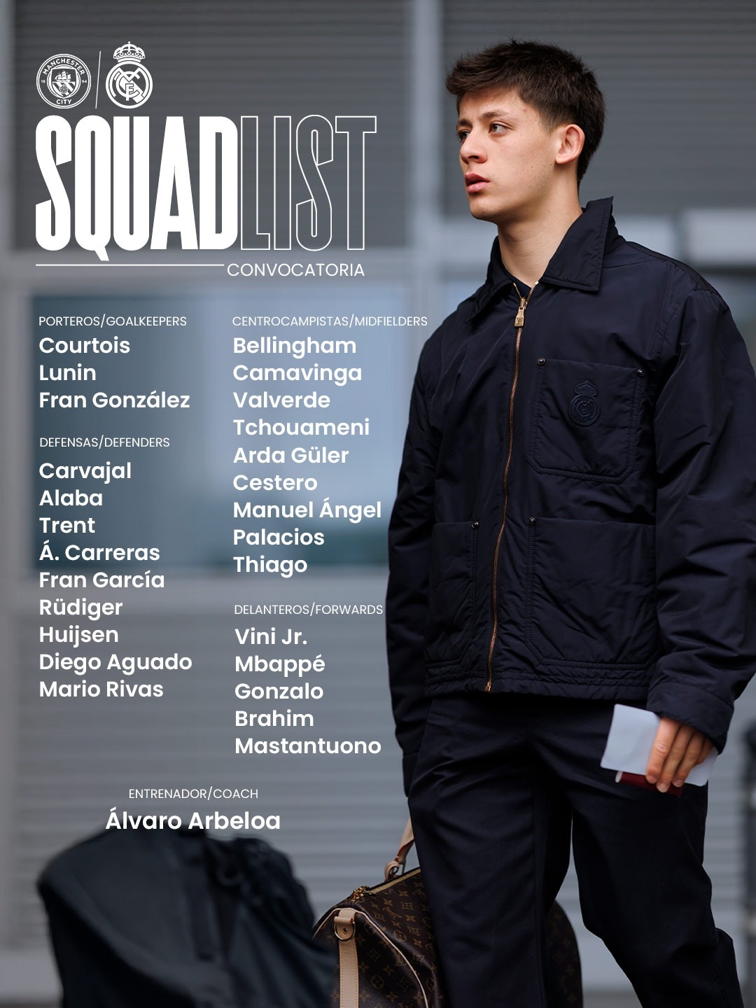 后衛(wèi):卡瓦哈爾、阿拉巴、阿諾德、卡雷拉斯、弗蘭·加西亞、呂迪格、赫伊森、阿瓜多、馬里奧·里瓦斯