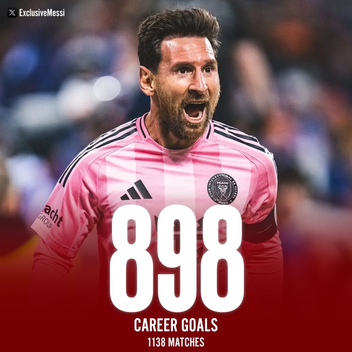 直播吧03月02日訊 美職聯(lián)第2輪,邁阿密國(guó)際4-2逆轉(zhuǎn)奧蘭多城。梅西雙響職業(yè)生涯已經(jīng)打入898球。
