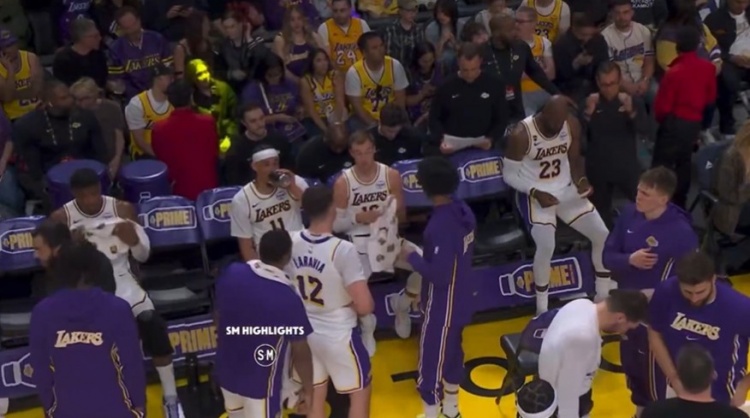GIF-詹姆斯在替補席看數據表