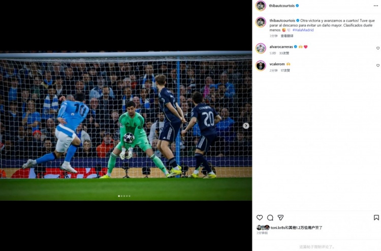 本場比賽庫爾圖瓦因傷下場,賽后他也在個(gè)人社媒曬出本場撲救照片,配文寫道:“又一場勝利,我們晉級(jí)四分之一決賽了!為了避免傷勢加重,我不得不在中場休息時(shí)提前離場。不過,成功晉級(jí)讓這份疼痛似乎也沒那么難熬了?!?/p>
