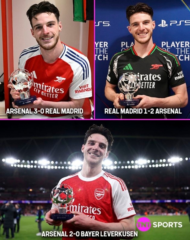 本場比賽賴斯破門,賽后也當選歐冠官方評選出的本場最佳球員。據(jù)統(tǒng)計,在阿森納近三次歐冠淘汰賽取勝的比賽中,賴斯都當選了全場最佳,此前兩次均為擊敗皇馬的比賽。