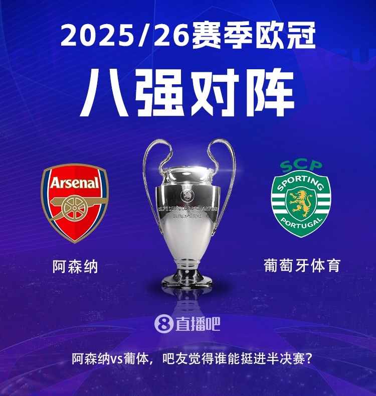 歐冠8強(qiáng)其中4席:阿森納、皇家馬德里、巴黎圣日耳曼、葡萄牙體育