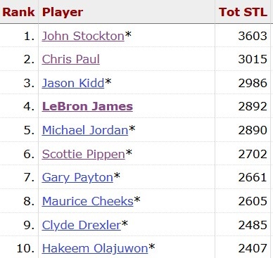 本場比賽過后,詹姆斯生涯搶斷總數(shù)(常規(guī)賽+季后賽)超越喬丹,上升至NBA歷史第四位。