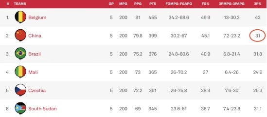 本屆世預(yù)賽,我們?nèi)置新手煌冻隽?1%的水平。如果沒(méi)有收官戰(zhàn)對(duì)巴西20投9中拉高了數(shù)據(jù),那么我們更為真實(shí)的三分命中率是28.1%......