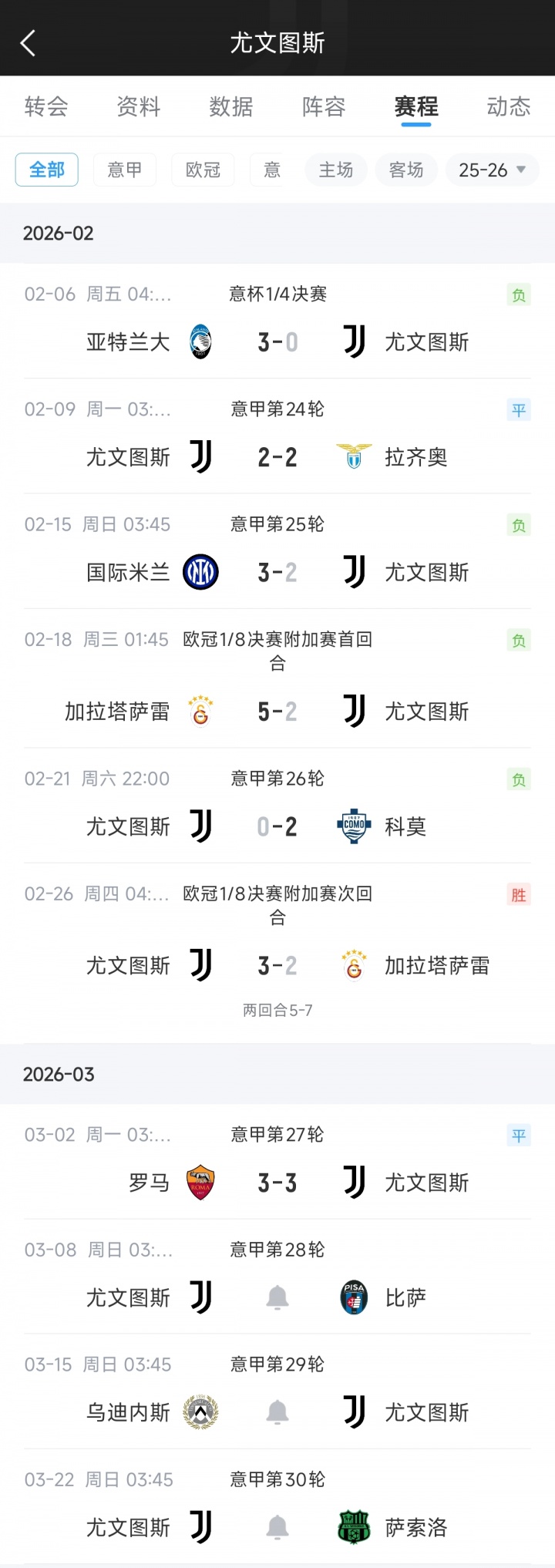 自上個(gè)月4-1大勝帕爾馬之后,近一個(gè)月,尤文三線(xiàn)表現(xiàn)均不佳。意大利杯尤文0-3慘敗亞特蘭大出局;歐冠尤文兩回合不敵加拉塔薩雷出局;聯(lián)賽尤文4輪不勝2平2負(fù),戰(zhàn)績(jī)分別是:2-2拉齊奧、2-3國(guó)米、0-2科莫、3-3羅馬。