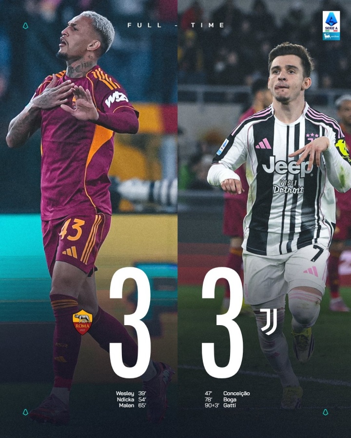 直播吧03月02日訊 意甲第27輪,尤文3-3戰(zhàn)平羅馬,近1個(gè)月的魔鬼賽程終于結(jié)束。