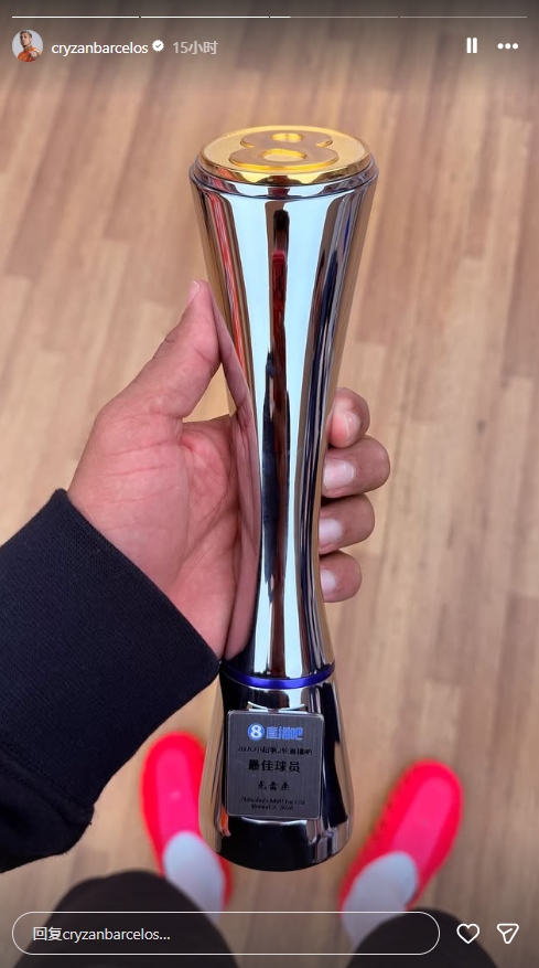 當選直播吧中超最佳!克雷桑ins曬直播吧獎杯:非常高興獲得最佳