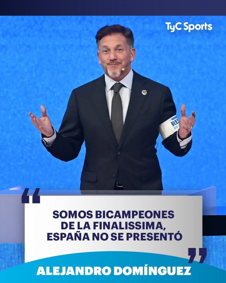 多明格斯:“如果我們按網球里棄權的規(guī)則,阿根廷就是歐美杯的雙冠王。我們要有這個自信,別人家的草并沒有更綠。我們知道西班牙3月31日要在巴塞羅那比賽,作為世界冠軍,我們要以我們的方式去捍衛(wèi)它。