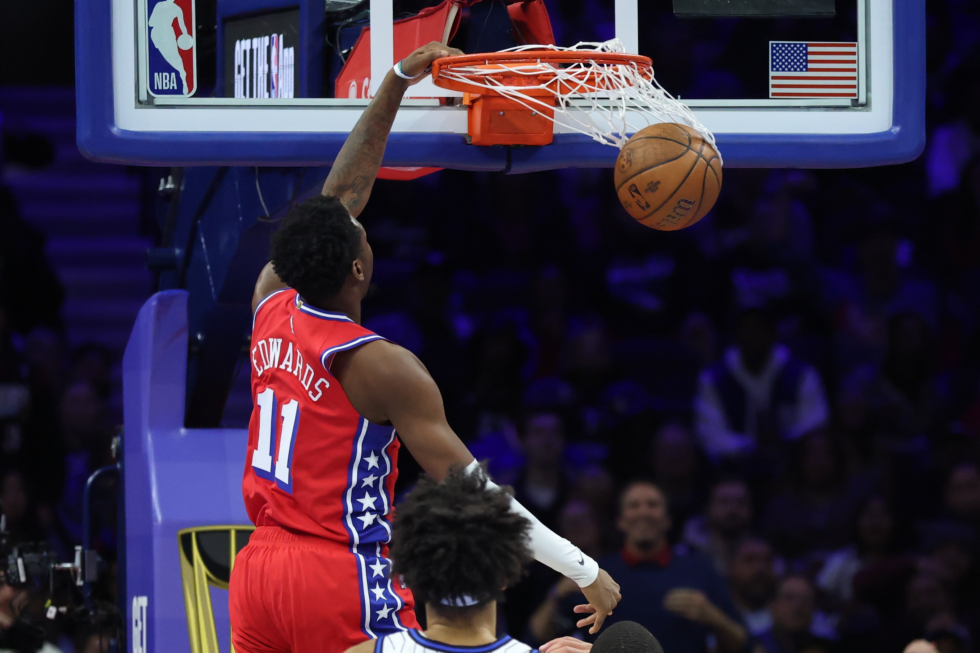 本場比賽,76人前鋒賈斯汀·愛德華茲表現(xiàn)搶眼,出場33分鐘18投11中,三分11中7、罰球3中3砍下32分外加4助攻2搶斷,正負值高達+47。