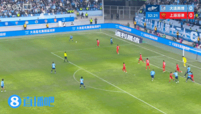 傷停補時3分鐘。上半場比賽結(jié)束,大連英博0-0上海海港。