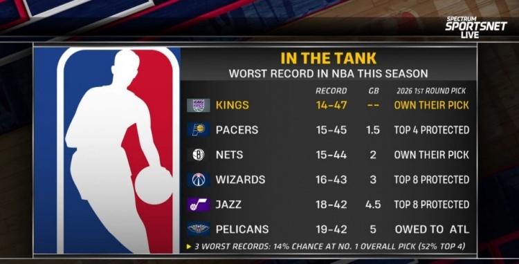 籃網(wǎng) 15勝44負 握有自己的首輪簽