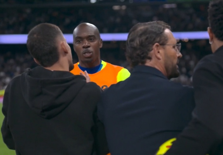 這名赫塔費(fèi)中衛(wèi)在球隊(duì)獲勝后直接走向皇馬替補(bǔ)席。恩約姆對(duì)維尼修斯的賬從首回合就記下了。當(dāng)時(shí)在赫塔費(fèi)主場(chǎng),球隊(duì)主場(chǎng)0-1輸給皇馬,恩約姆第80分鐘替補(bǔ)登場(chǎng)換下費(fèi)梅尼亞,目的是避免后者吃到第二張黃牌。但登場(chǎng)僅過(guò)了38秒,恩約姆就因與維尼修斯無(wú)球?qū)?,被紅牌罰下。