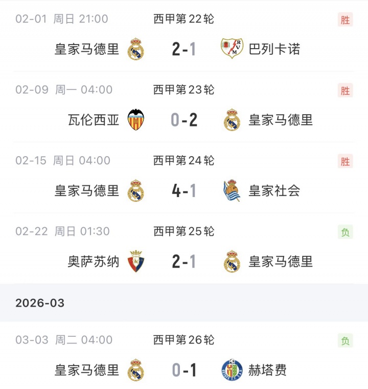 此前巴薩1-2不敵赫羅納,皇馬2分優(yōu)勢反超登頂。不過,皇馬榜首僅體驗了一輪,隨后1-2奧薩蘇納、0-1赫塔費,從領先2分變成了落后4分。