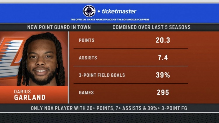 快船客場挑戰(zhàn)勇士,加蘭快船生涯首秀,轉(zhuǎn)播方給出加蘭數(shù)據(jù):