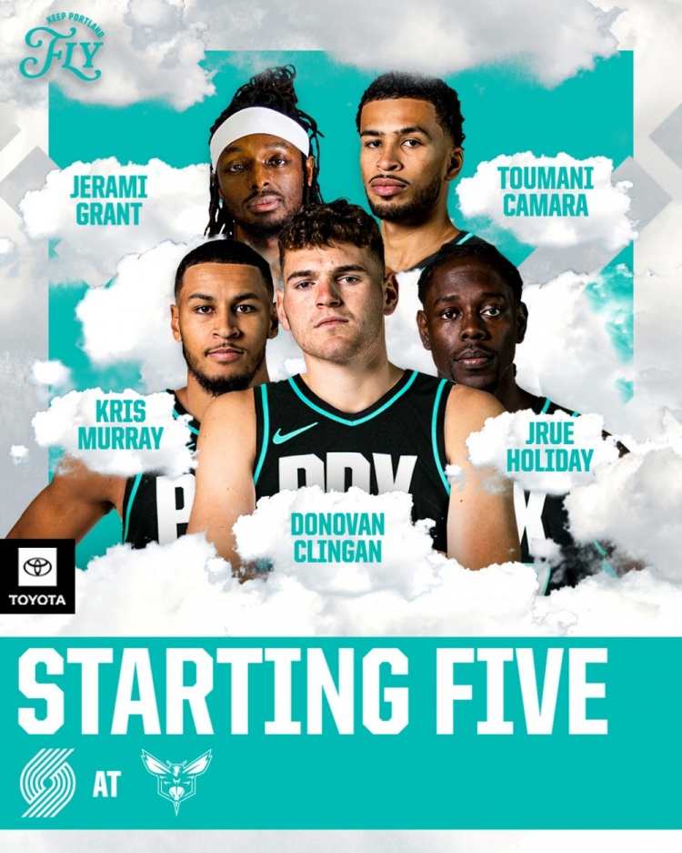 賽前開拓者公布了本場(chǎng)首發(fā)陣容:霍勒迪、格蘭特、卡馬拉、克里斯·穆雷、克林根。