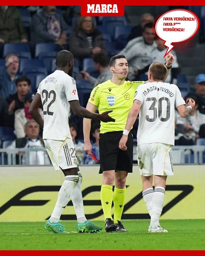 TA表示,馬斯坦托諾在傷停補(bǔ)時(shí)階段因抗議判罰而被紅牌罰下,根據(jù)主裁判的賽后報(bào)告,馬斯坦托諾辱罵裁判“真**是恥辱”。
