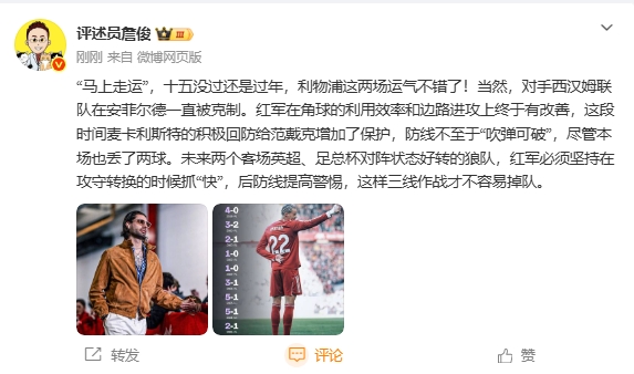 “馬上走運(yùn)”,十五沒(méi)過(guò)還是過(guò)年,利物浦這兩場(chǎng)運(yùn)氣不錯(cuò)了!當(dāng)然,對(duì)手西漢姆聯(lián)隊(duì)在安菲爾德一直被克制。紅軍在角球的利用效率和邊路進(jìn)攻上終于有改善,這段時(shí)間麥卡利斯特的積極回防給范戴克增加了保護(hù),防線不至于“吹彈可破”,盡管本場(chǎng)也丟了兩球。