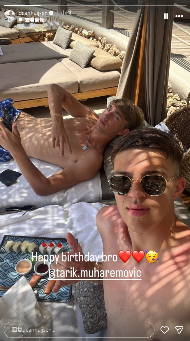 在首條快拍中,赫伊森曬出與朋友的度假合照,配文“Happy birthday bro????