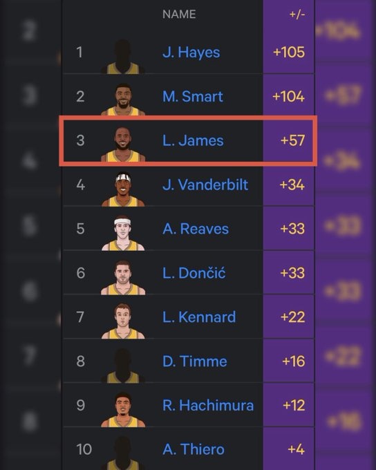 3、詹姆斯 +57