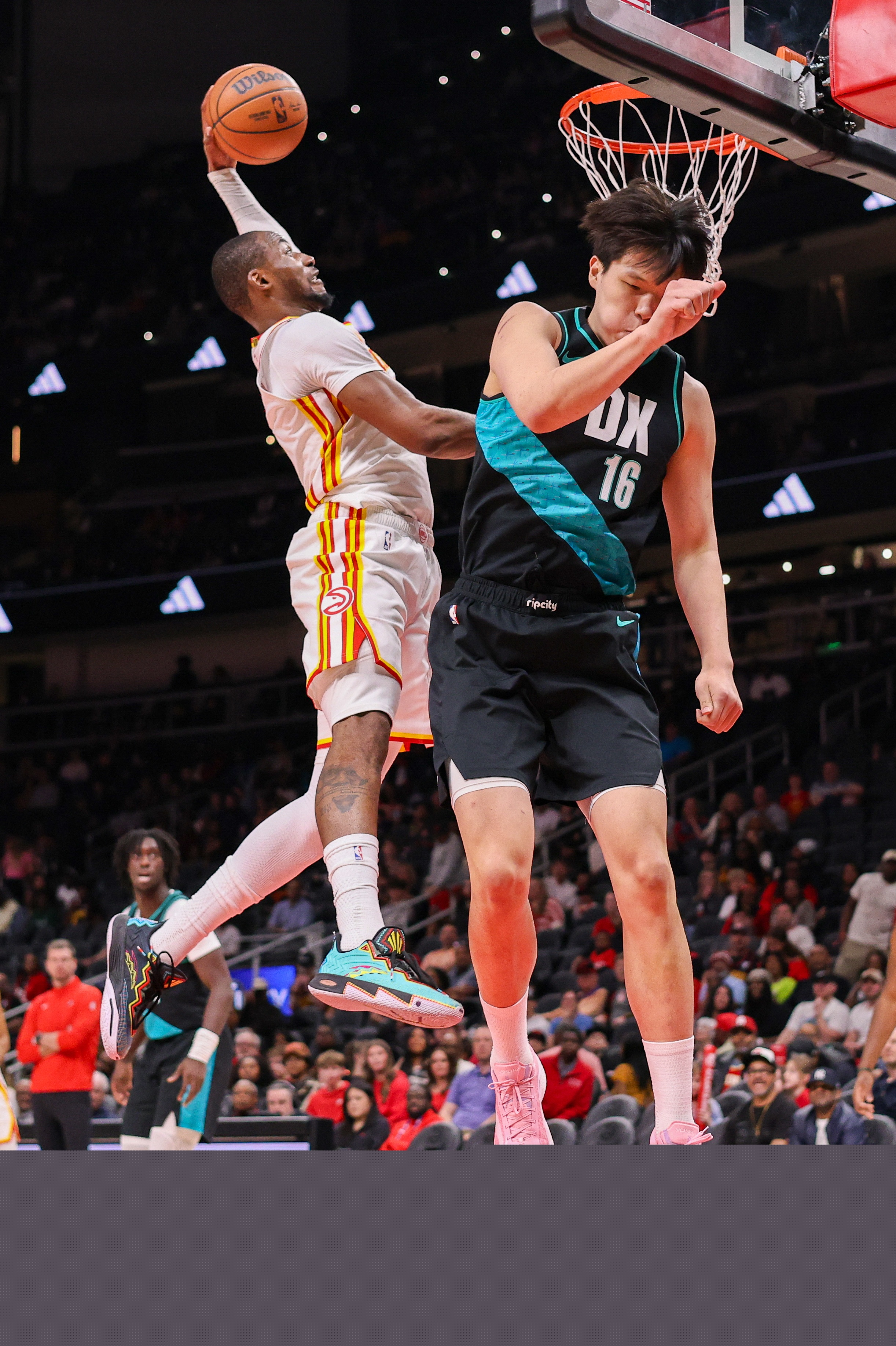 老鷹隊(duì)解說員多米尼克·威爾金斯——你完全能想象他肯定在這個(gè)飛天遁地、暴力扣籃的庫明加身上看到了很多自己當(dāng)年的影子——也表達(dá)了同樣的贊賞之情。當(dāng)時(shí)庫明加在低位接球,隨后完成了一記雙腳起跳的左手重扣,嚇得開拓者2.13米的新秀楊瀚森抱頭躲閃。