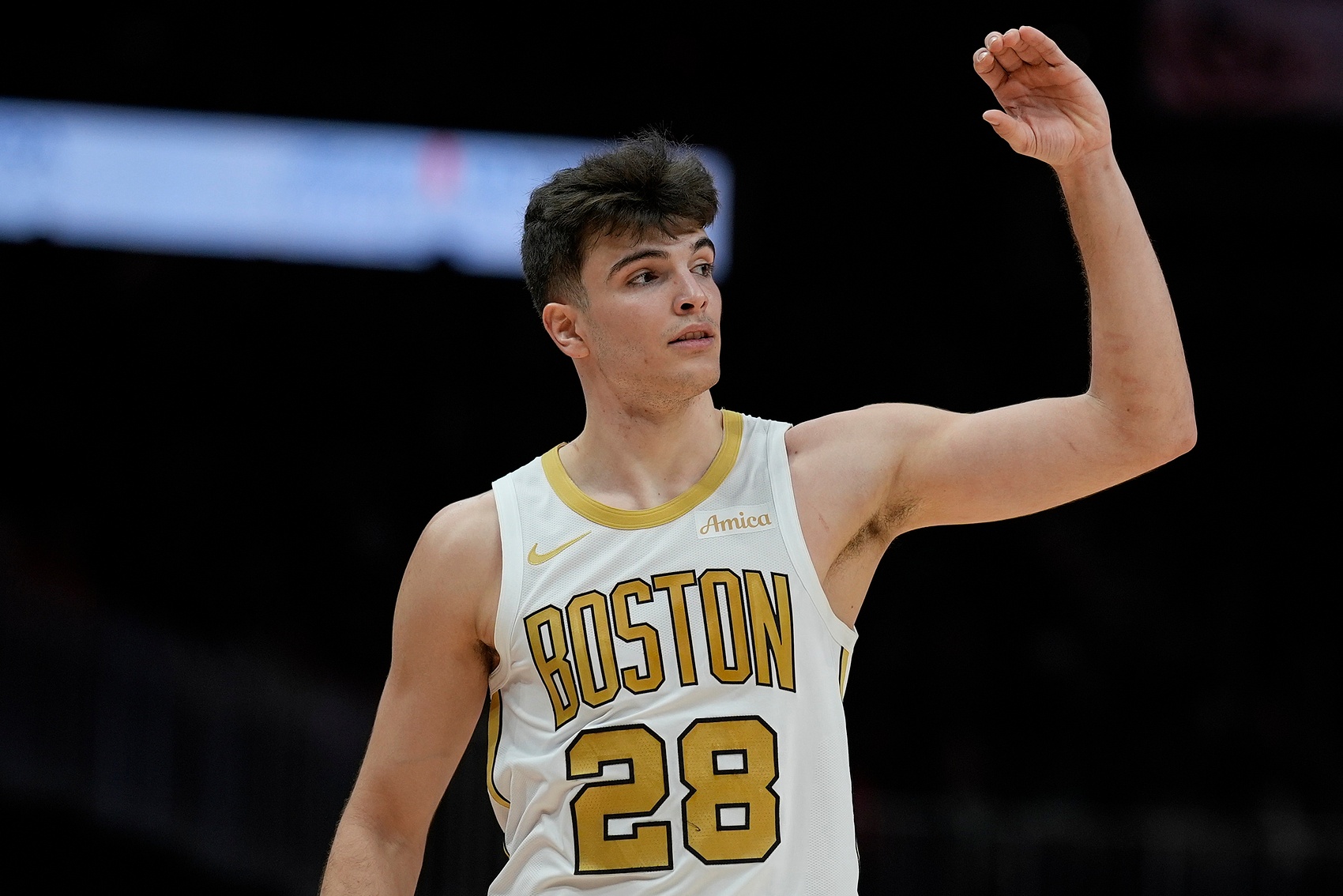 談及隊里28號新秀岡薩雷斯有沒有讓他聯(lián)想到哪位球員,武切維奇表示:“我覺得每個人都在走出屬于自己的道路。我認為他的未來非常光明,而且他對待籃球的態(tài)度也很正確?!?/p>