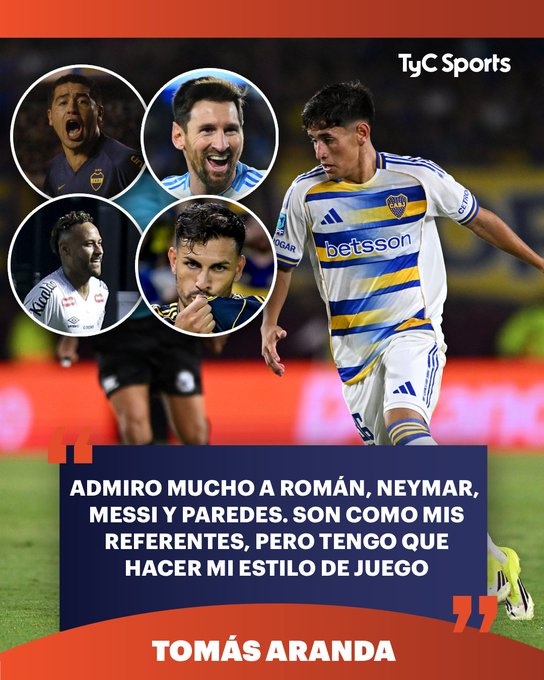 直播吧3月5日訊 在博卡青年對陣?yán)沟谋荣愔惺状问装l(fā)出場并取得勝利后,博卡小將托馬斯·阿蘭達(dá)談到了他的足球榜樣。