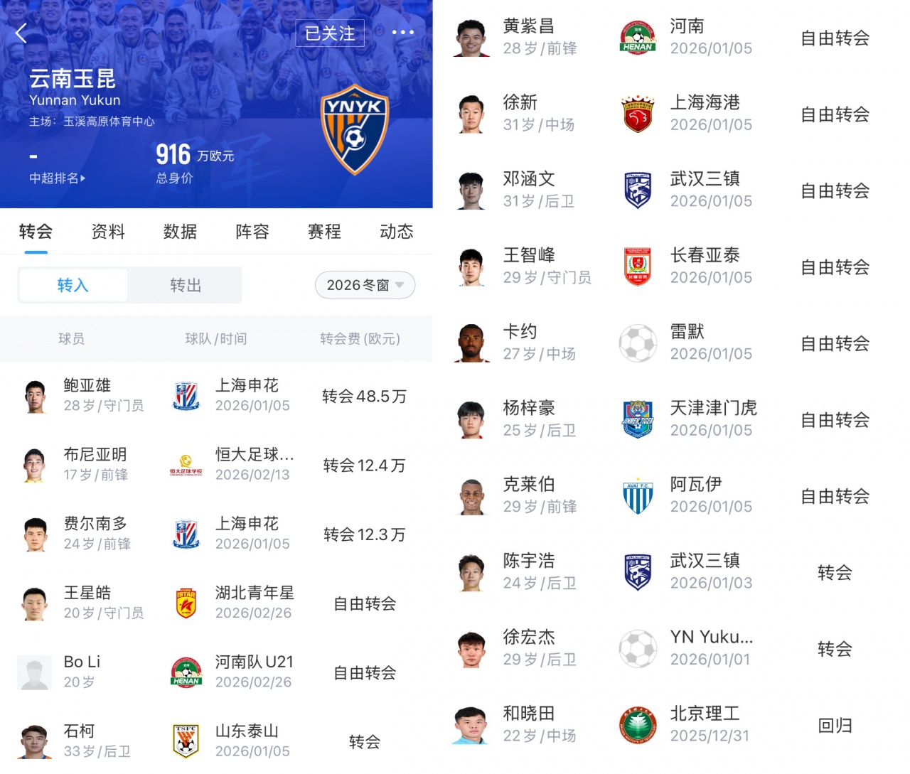 木塔力甫回歸成都蓉城,徐彬留洋英倫,楊希加盟上海海港,只有李昊還在青島西海岸堅(jiān)守。