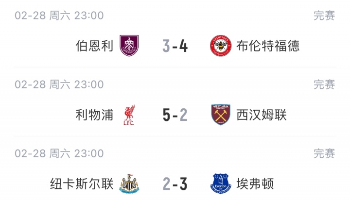 直播吧03月01日訊 今夜,英超第28輪早場3場比賽上演進球狂歡,利物浦、埃弗頓等6支球隊合力打入19球。