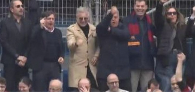 當諾坎普的巴薩球迷們齊聲高喊傳統(tǒng)口號“跳跳跳!不跳就是馬德里人!”拉波爾塔也和全場球迷們一起跳動。而情緒激動的他還做出了一個butifarra手勢,這是一種將肘部曲起并把另一只手放在上面的侮辱性手勢。