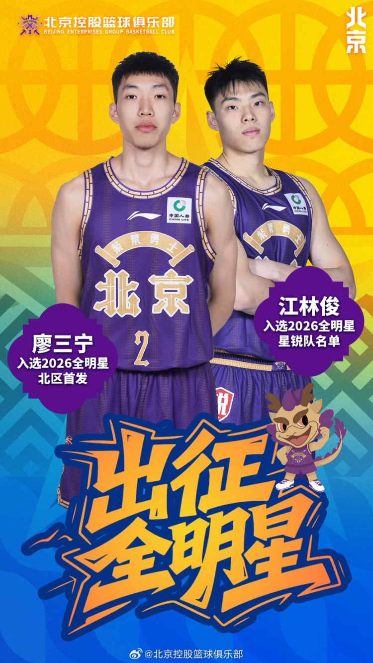 2026年3月6日至8日CBA全明星將在浙江諸暨舉辦。我俱樂部成員廖三寧 、江林俊將參加本次活動。
