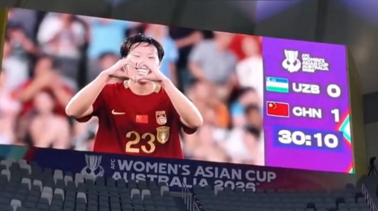 直播吧3月6日訊 女足亞洲杯第二輪,中國女足3-0擊敗烏茲別克斯坦,提前一輪小組出線。比賽中,邵子欽主罰點球命中,進球后她比心慶祝。