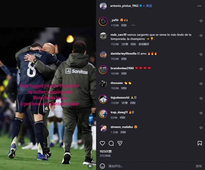 平圖斯賽后更新社媒,他寫到:進球后,巴爾韋德?lián)肀Я宋?,為了一起告慰我去世的母親。巴爾韋德你是一名真正的紳士和極其出色的運動員。