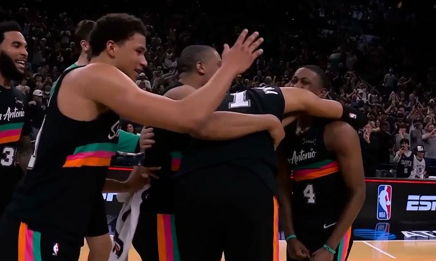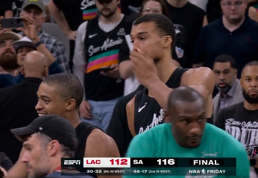 GIF-馬刺球員瘋狂慶祝中~?。?!文班亞馬抱著??怂褂悬c淚目了~!??!