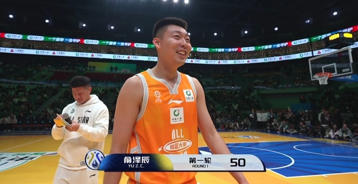 遼寧射手俞澤辰 扣籃大賽第一扣轉(zhuǎn)身360°雙手炸扣 收獲50分